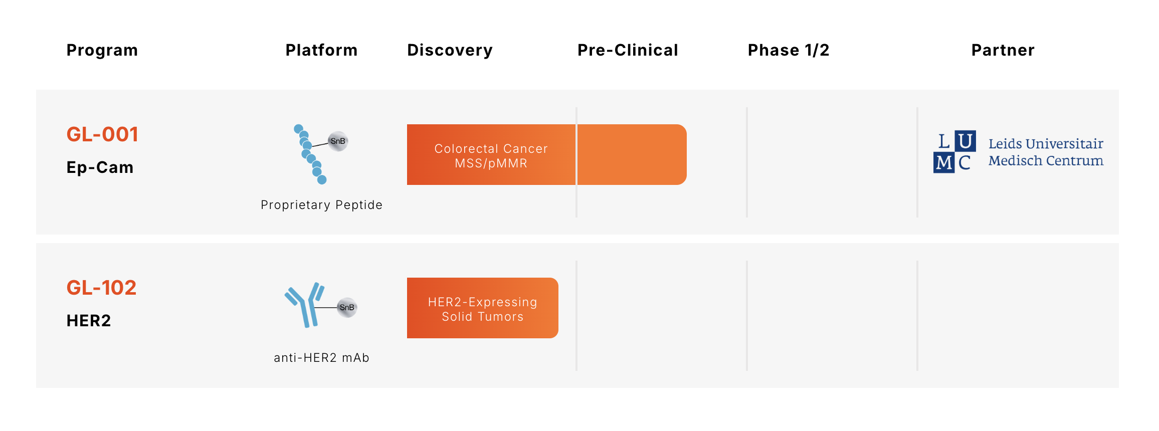 Our pipeline integrates the proprietary SnB light-activated payload with antibody- and peptide-based targeting strategies to address difficult-to-treat solid tumors through a novel dual-control approach. By combining molecular targeting with spatially controlled light activation, the platform is designed to enhance tumor selectivity while minimizing systemic exposure.